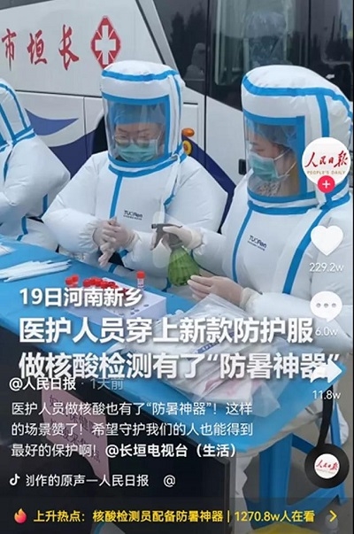 8月22日,《人民日報》微信公眾號就專門宣傳了一款“新型防護(hù)服”。